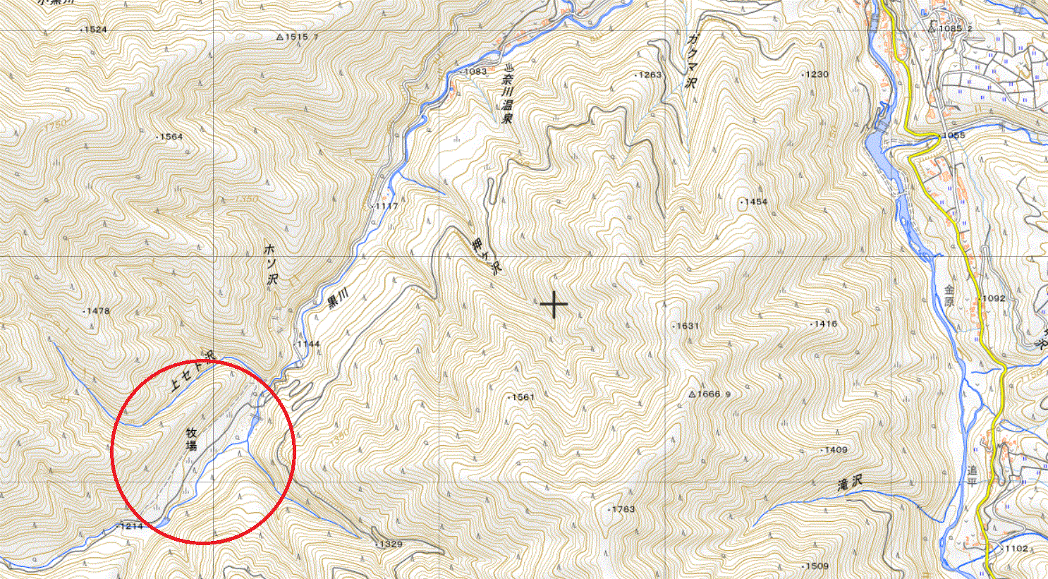 [ 拡大 ] 地理院地図だと、赤丸で囲んだあたりになると思います。